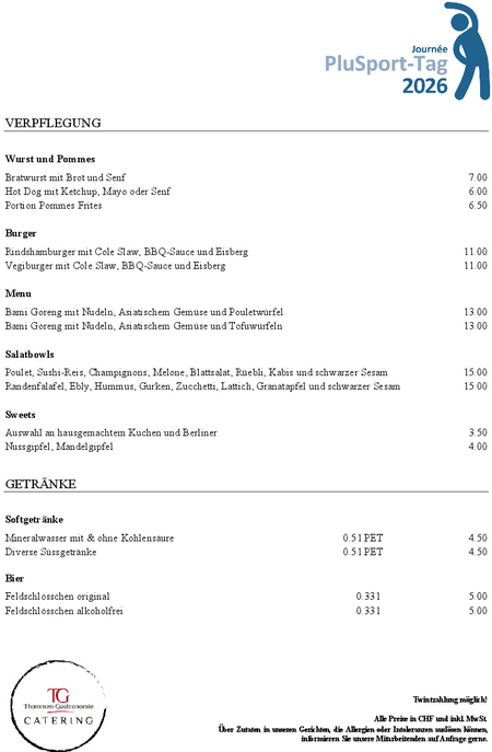 - Übernachtung (Für Platz- und Disziplinen-Chefs und -Chefinnen und deren Stellvertretende)