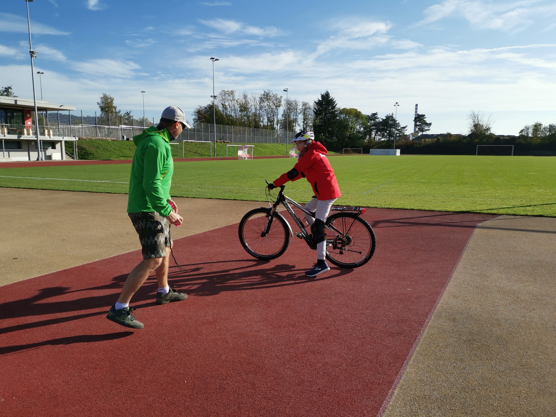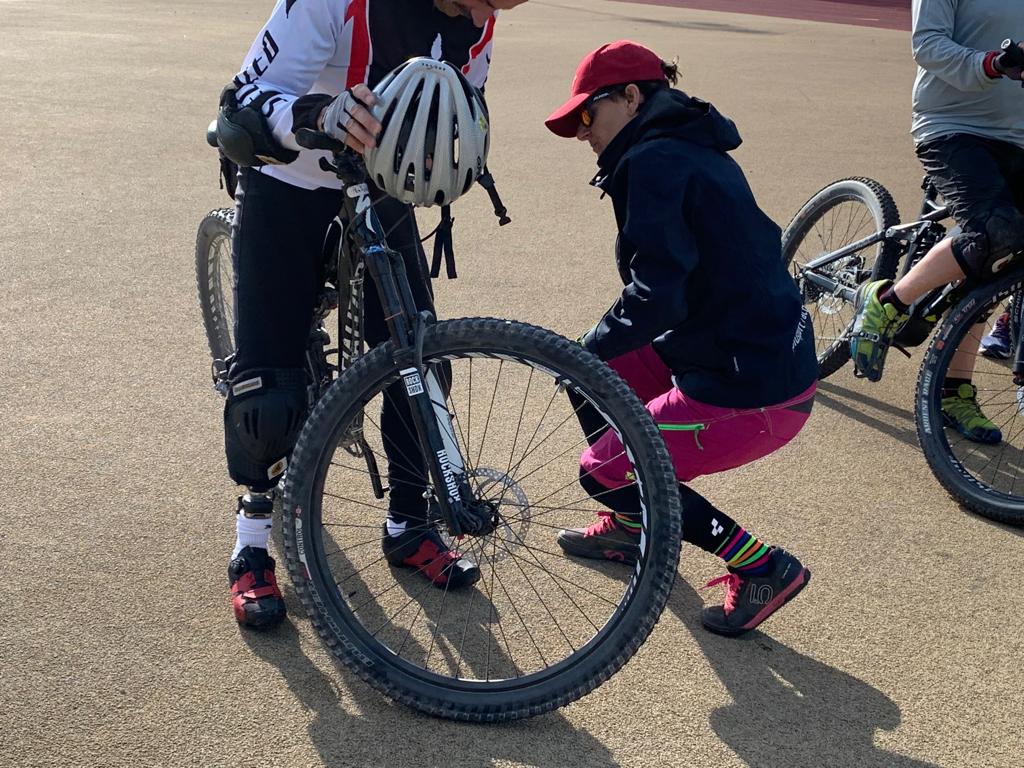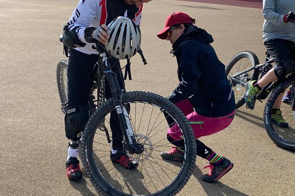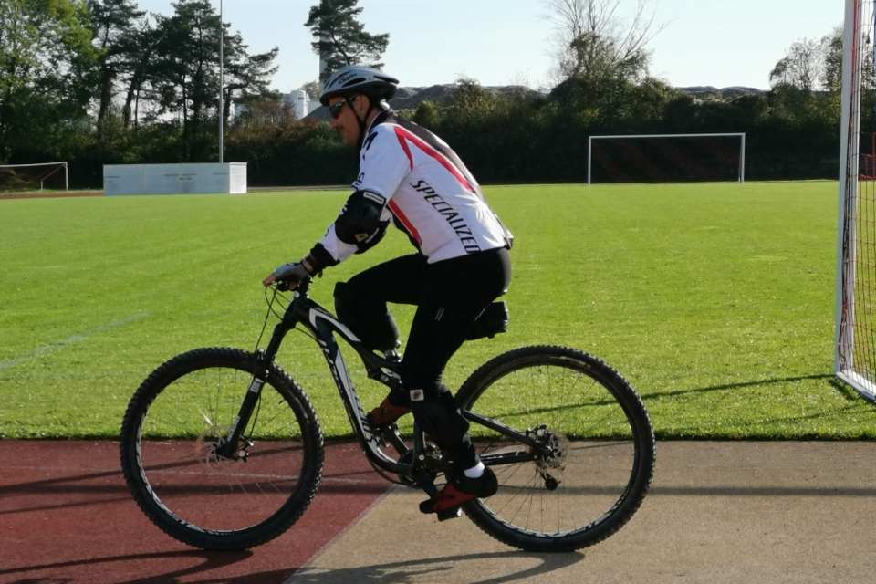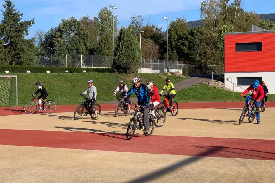 Verschiedene Übungen mit oder ohne Hindernisse, Grundtechnik für sicheres Biken - Menschen mit Prothesen oder einem Handicap konnten das mit Francesca Brenni und Heiko Martin auf der Sportanlage Bustelbach in Stein/AG lernen und üben.