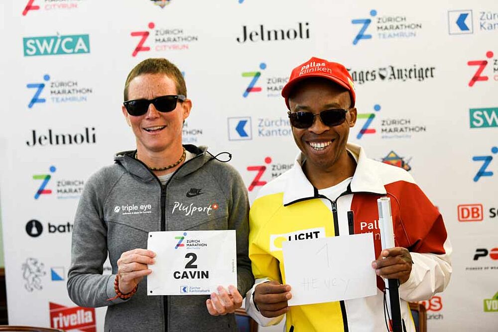 Die Bernerin Chantal Cavin kennt den Zürich Marathon bestens: «Ich möchte meine Bestzeit von 3:14:11 vom vergangenen Jahr klar unterbieten und bin überzeugt, dass ich das auch schaffen kann. Die Strecke liegt mir, und ich und meine Guides bilden ein eingespieltes Team.» Die ehemalige Schwimm-Weltmeisterin vertraut auf Micha Güdel und Céline Hauert. Eine kleine Schnur verbindet Cavin mit den Guides: «Eine Herausforderung sind für mich sicher die Tramgleise. Vor diesen müssen mich meine Guides immer schon im Voraus warnen.» Beim Warm-Up am Dienstag, 23. April 2019, wird Chantal Cavin vom Zürcher Regierungspräsident Thomas Heiniger als «Special-Guide» begleitet.