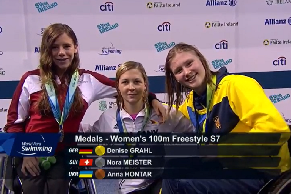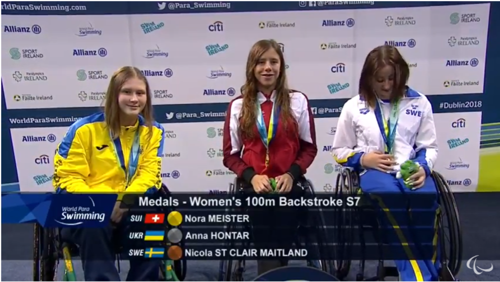 100m Freistil (S7). Frauen. 1. Denise Grahl (GER) 1:11,62. 2 Nora Meister (Lenzburg AG) 1:13,83. 3. Anna Hontar (UKR) 1:17,27.