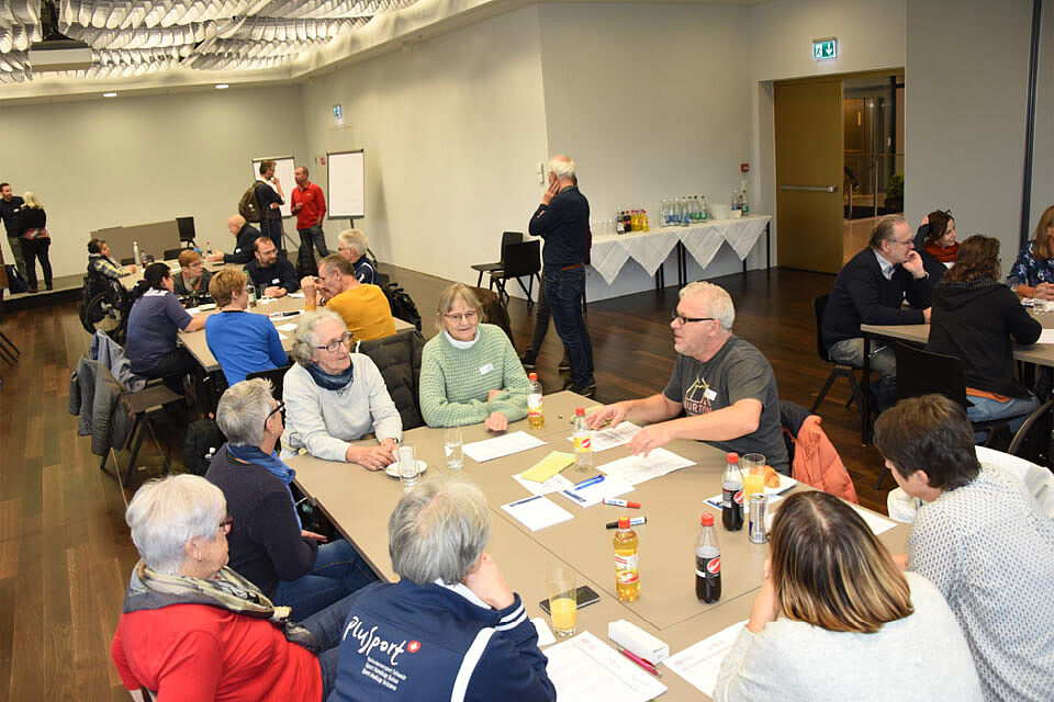50 VertreterInnen von Mitgliedervereinen der drei Verbände trafen sich am Samstag-Vormittag im Forum 1+2. Neben dem gegenseitigen Kennenlernen in regionalen Gruppen, dem Austausch über die jeweiligen Aktivitäten stand das Thema Inklusion auf dem Programm. Nach einer Einleitung durch Martin Boltshauser, GL-Mitglied Procap und Mitglieder der BSV-Arbeitsgruppe stellte Gabriel Currat, Projektleiter Unified Sports von Special Olympics sein Inklusionsprojekt vor. Die anschliessende Diskussion brachte interessante Ideen für mögliche Ansatzpunkte, für eine stärkere Kooperation unter den Behindertensport-Organisationen, für den Umgang mit Inklusion zu Tage. Eine grosse Mehrheit wünschte eine nächste Durchführung dieser Tagung anlässlich der nächsten Swiss Handicap.