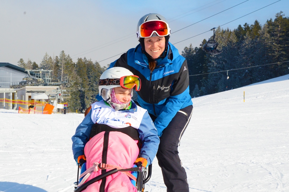 Letztes Jahr wagte sich Lian erstmals auf die Skipiste. Lange war ungewiss, ob Wintersport für ihn überhaupt möglich sein würde, denn die Orthesen führten schnell zu kalten Füssen und Schnee war früher nicht sein Element. Doch das Schneesportcamp wurde ein voller Erfolg. Auf einem Dualskibob, der von einer Betreuungsperson auf Skiern geführt wurde, glitt Lian den Hang hinunter. Genau solche adaptierten Sportgeräte ermöglichen es PluSport, Menschen im Rollstuhl am Schneesport teilhaben zu lassen.