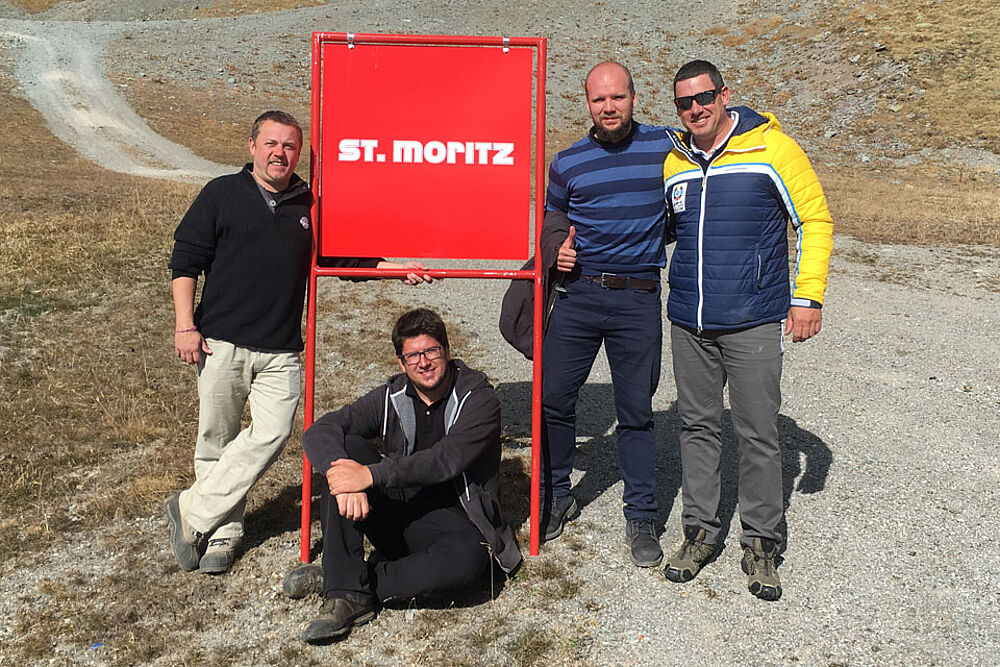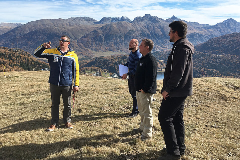 Zusammen mit Wim Rossel, Rennleiter St. Moritz Sport & Events hat Sascha Beck und sein Paralympic-Broadcasting-Team die Infrastruktur in St. Moritz begutachtet.